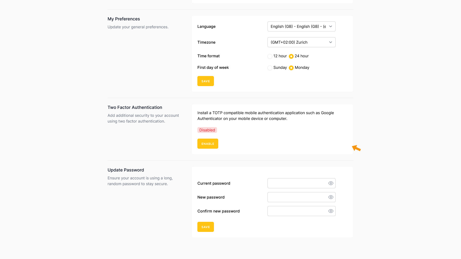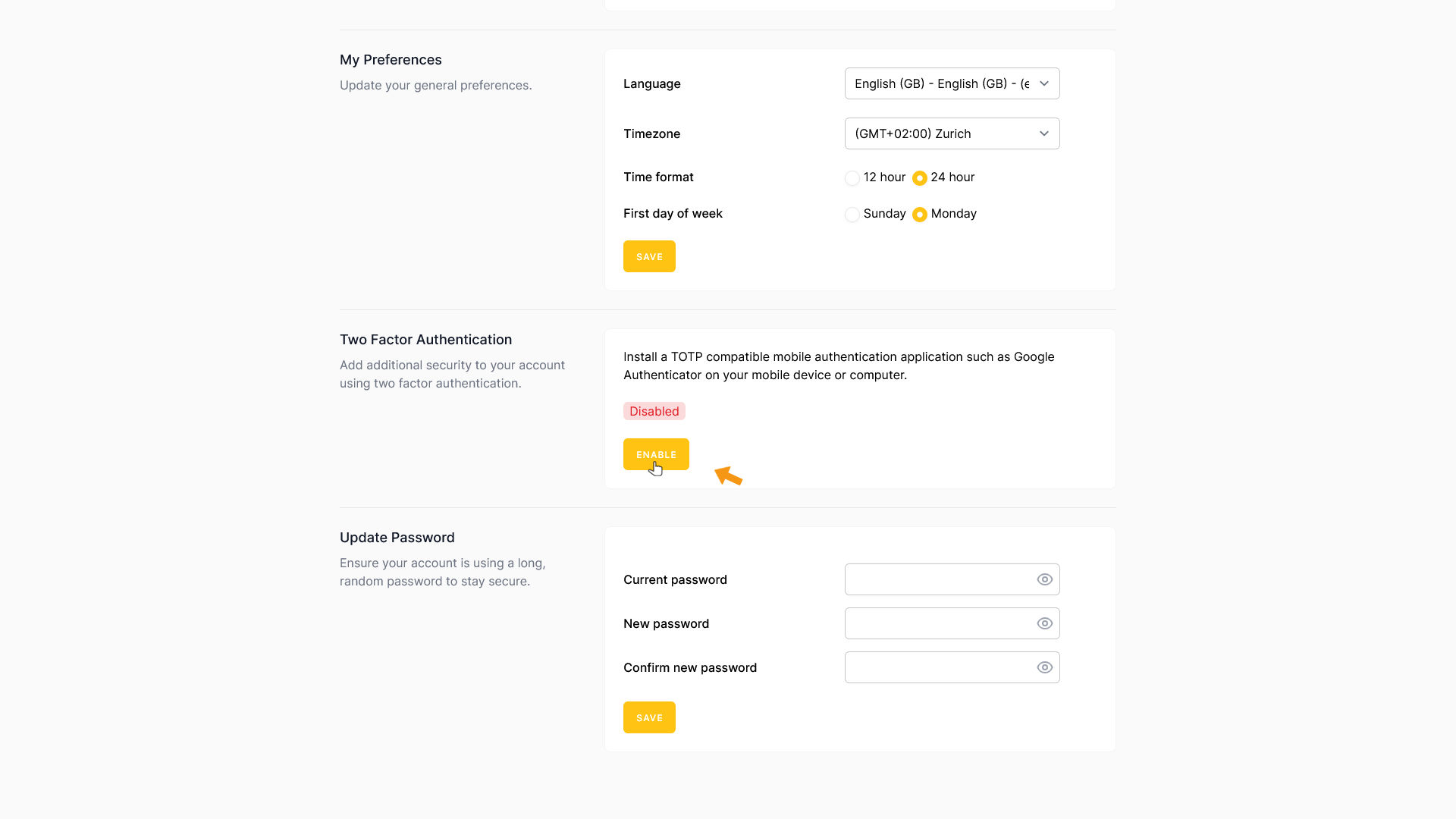To activate two-factor authentication, click ENABLE.