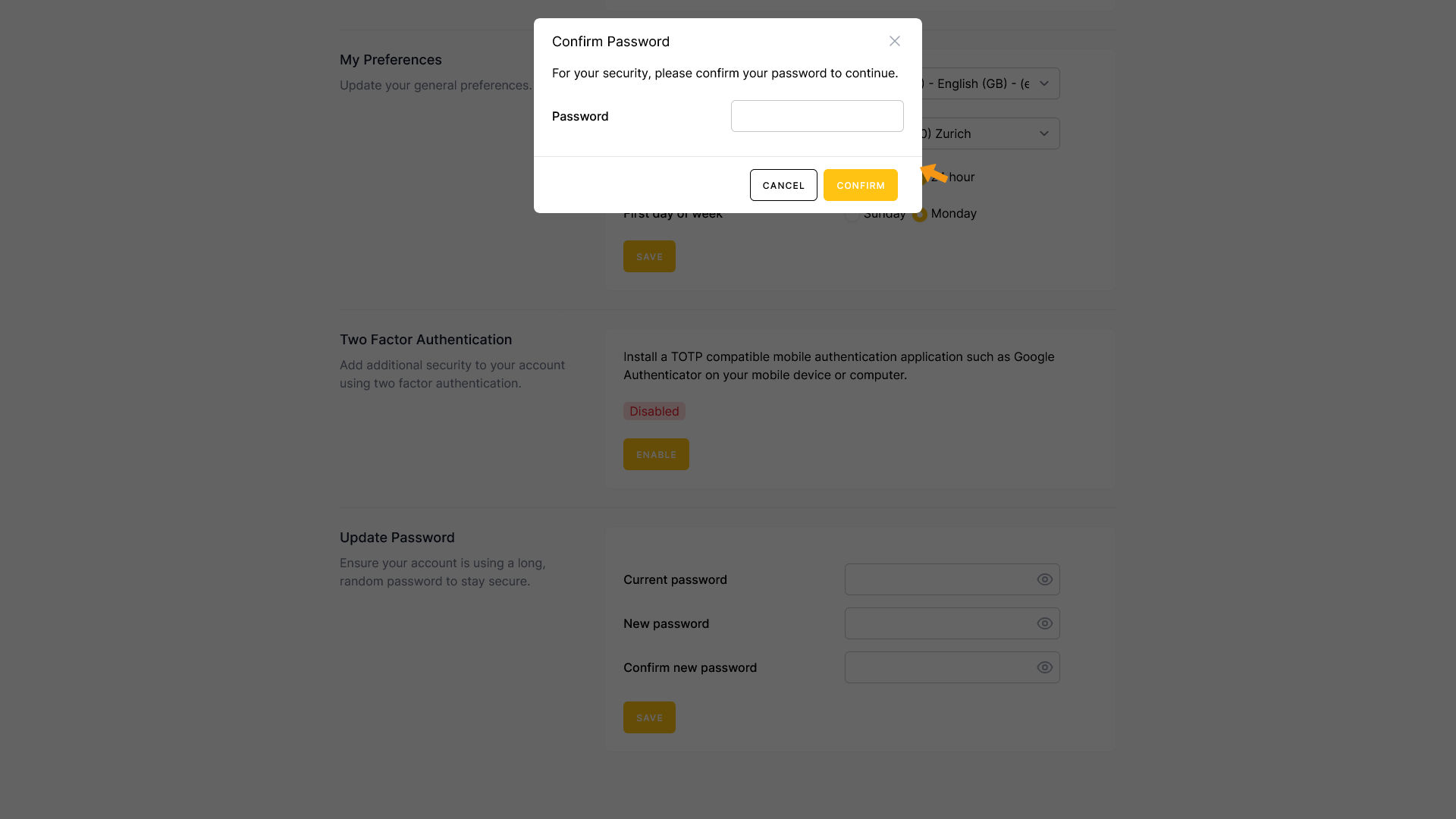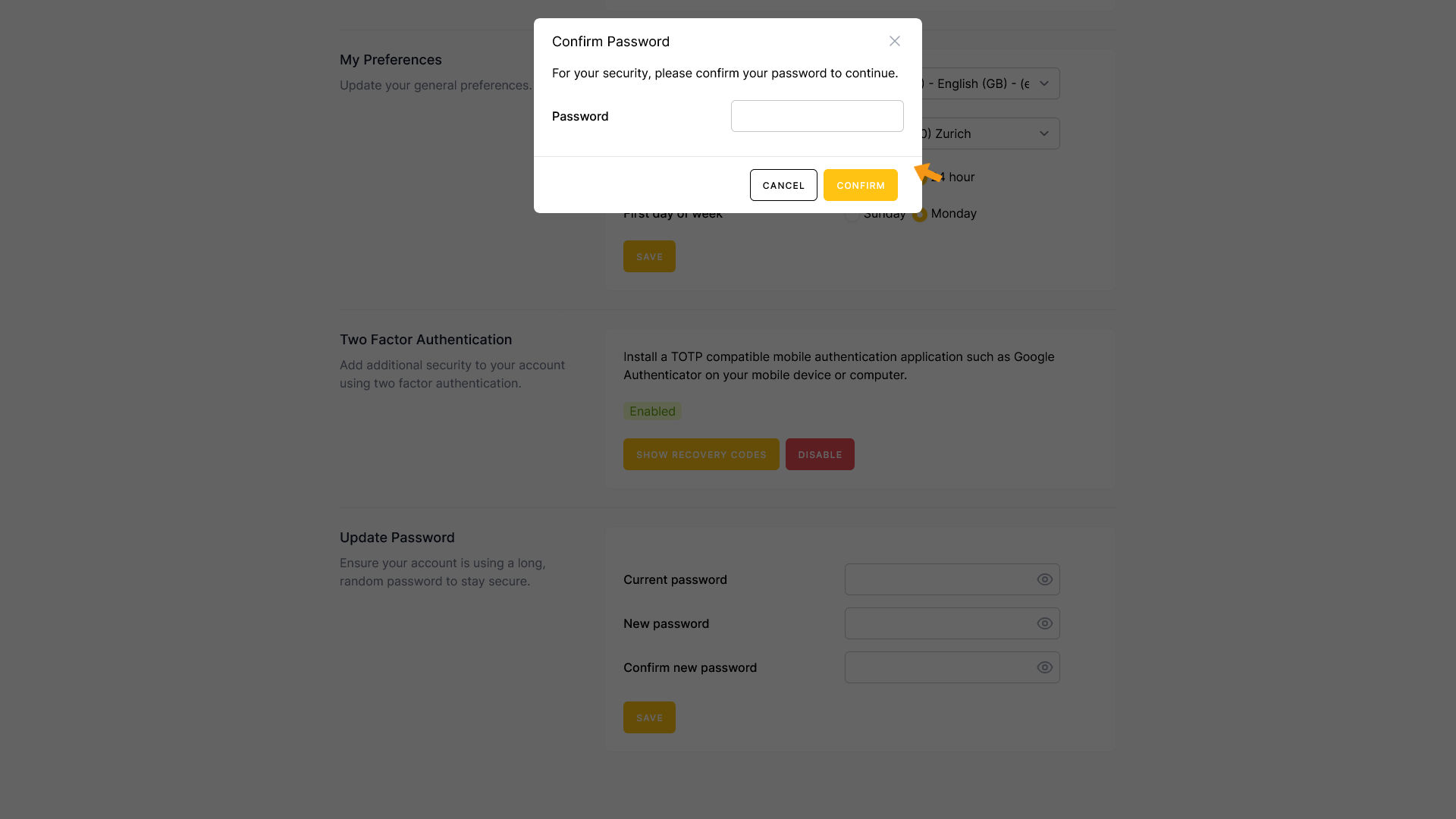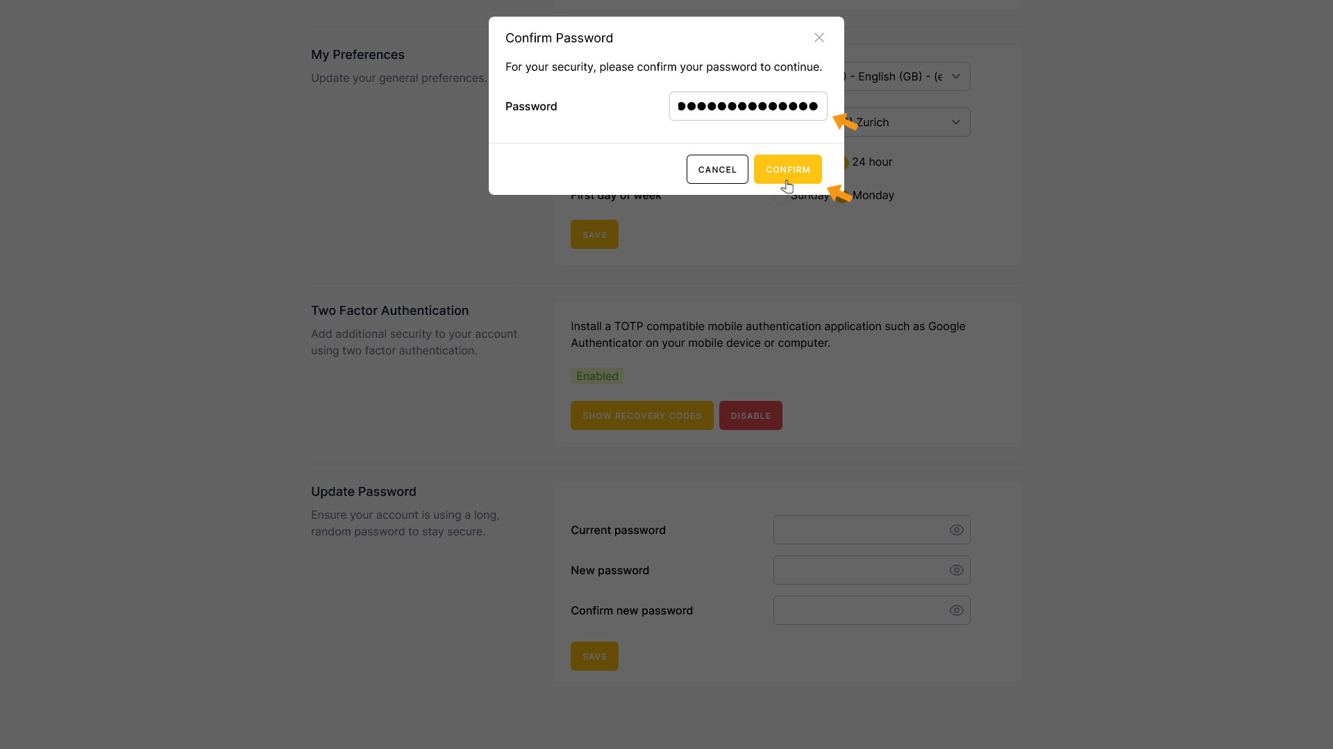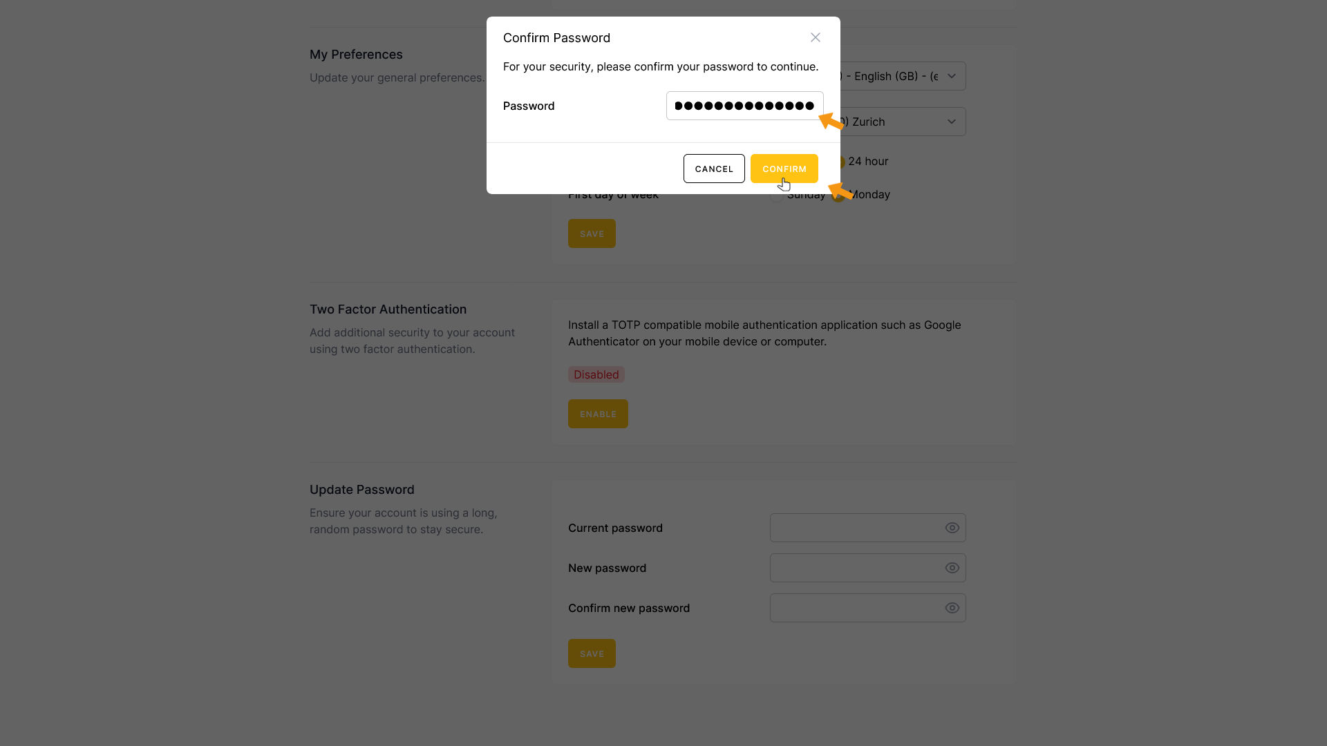 Enter your password and click CONFIRM.