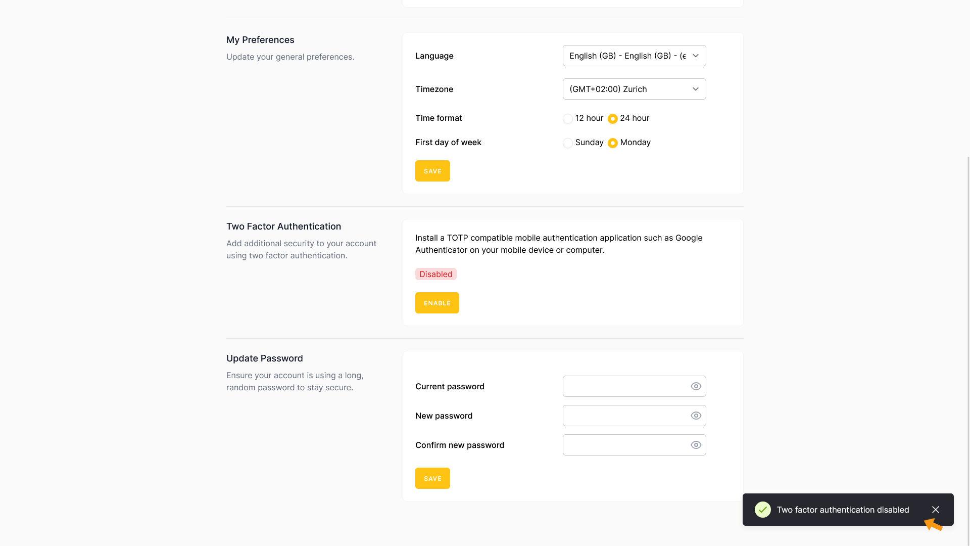 Two-factor authentication has been disabled.