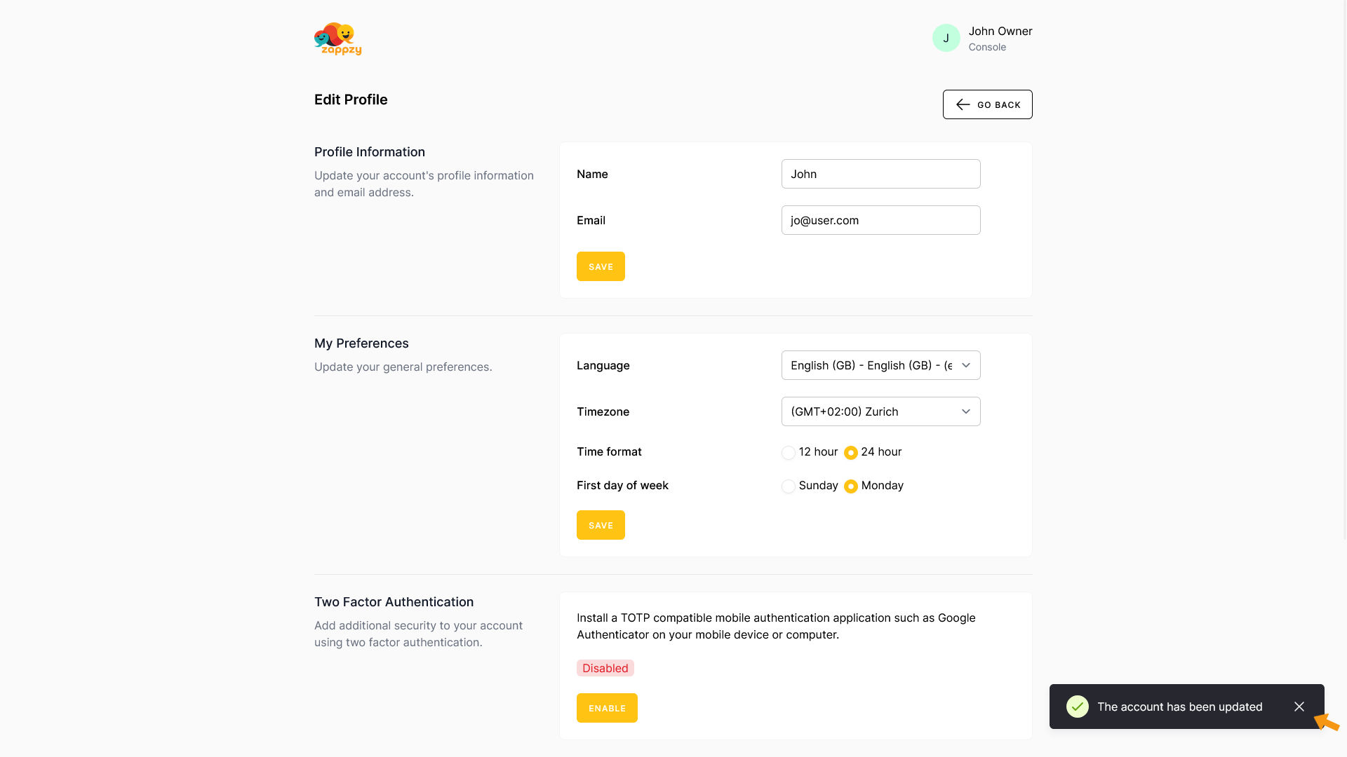 zappzy Support Center > Account > Edit Profile: Update your account info, preferences, and security settings