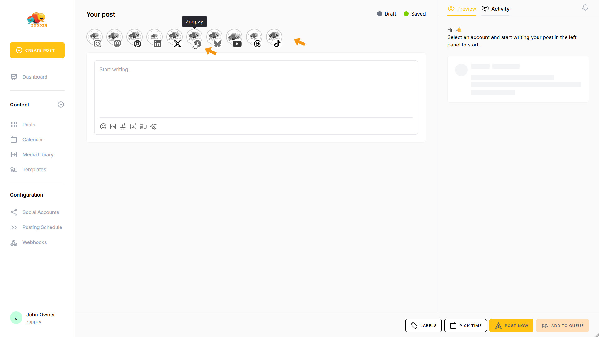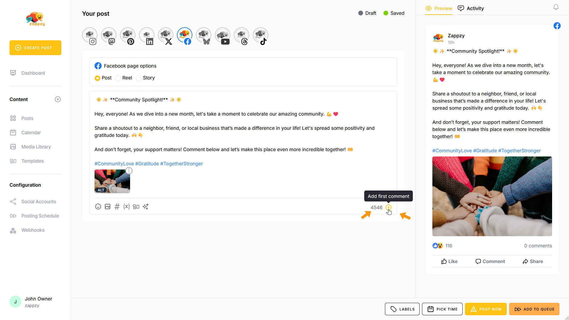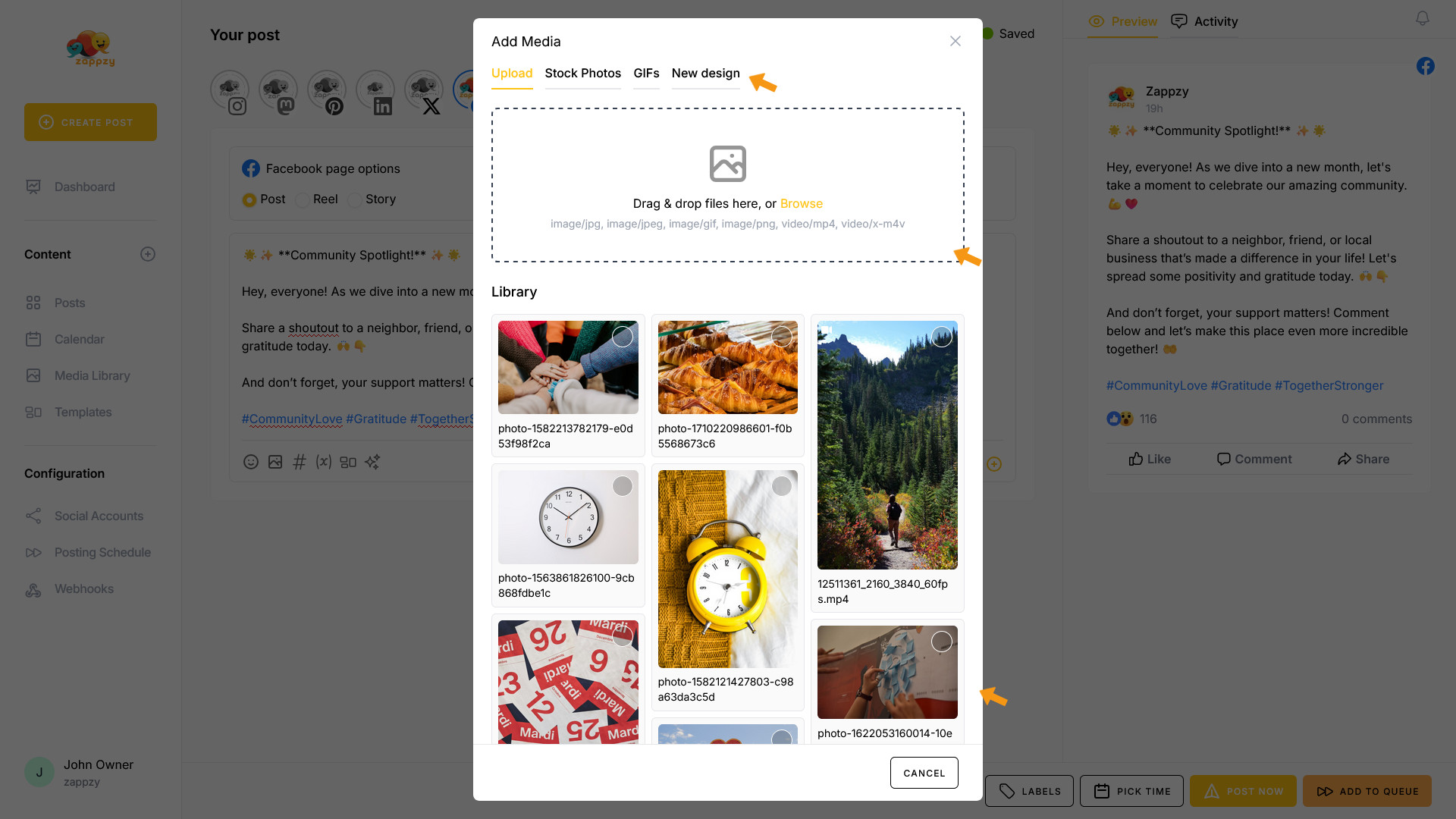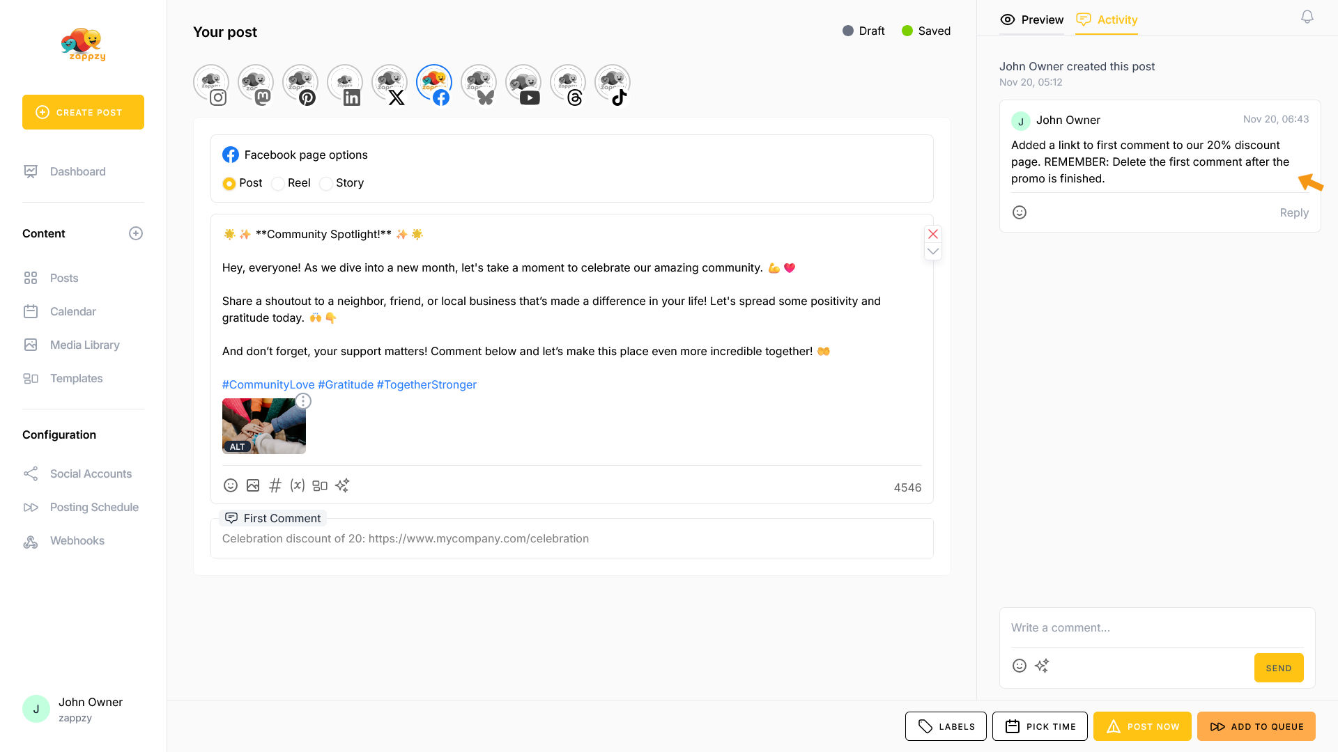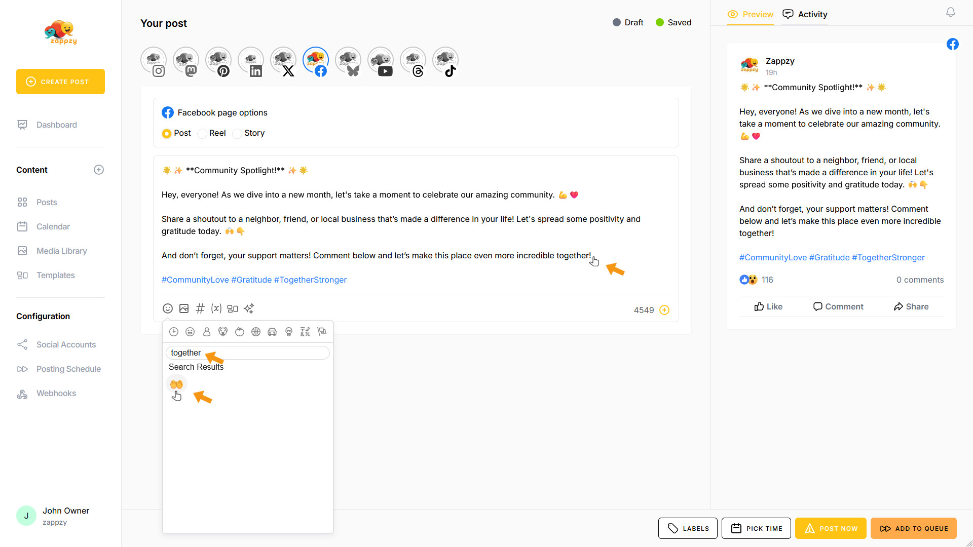 zappzy Support Center > Content > Create posts > Create a post > Create a post on Facebook