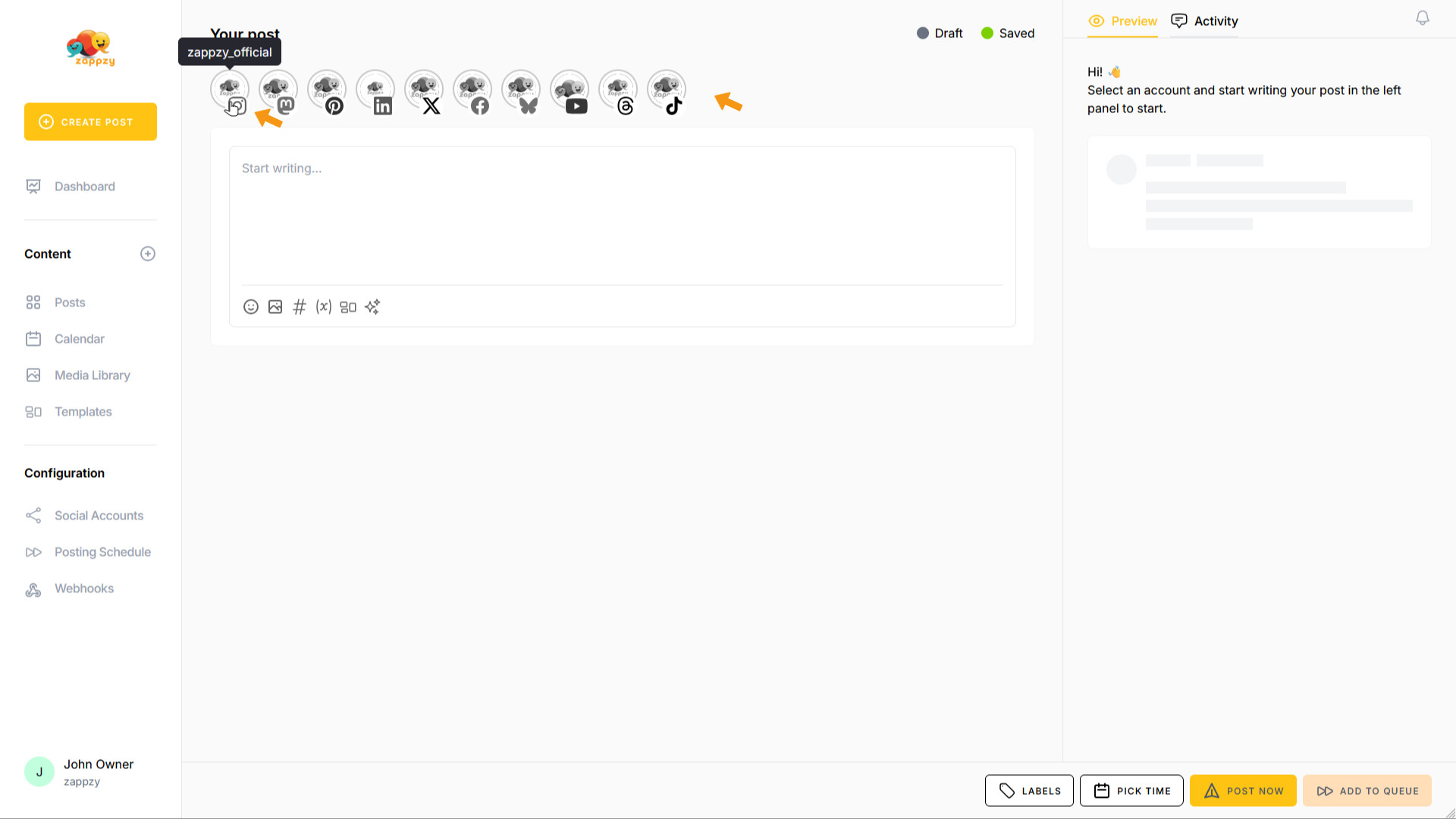 (This feature is available for Facebook, Instagram, Threads, X, Mastodon, Pinterest, Bluesky, and LinkedIn.)