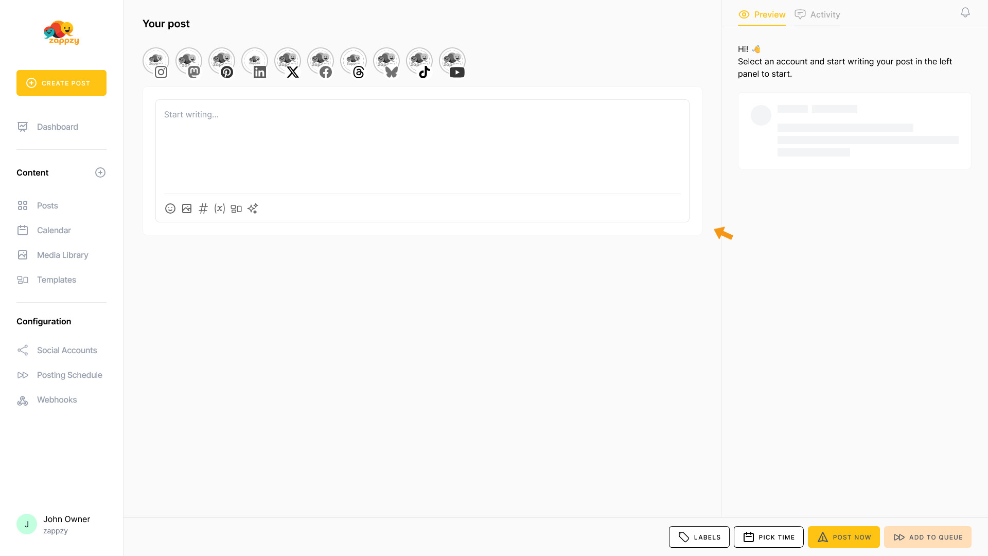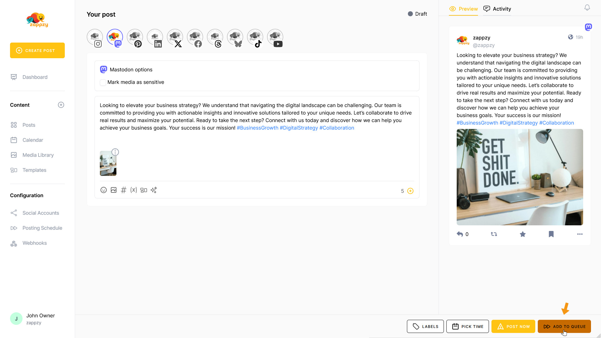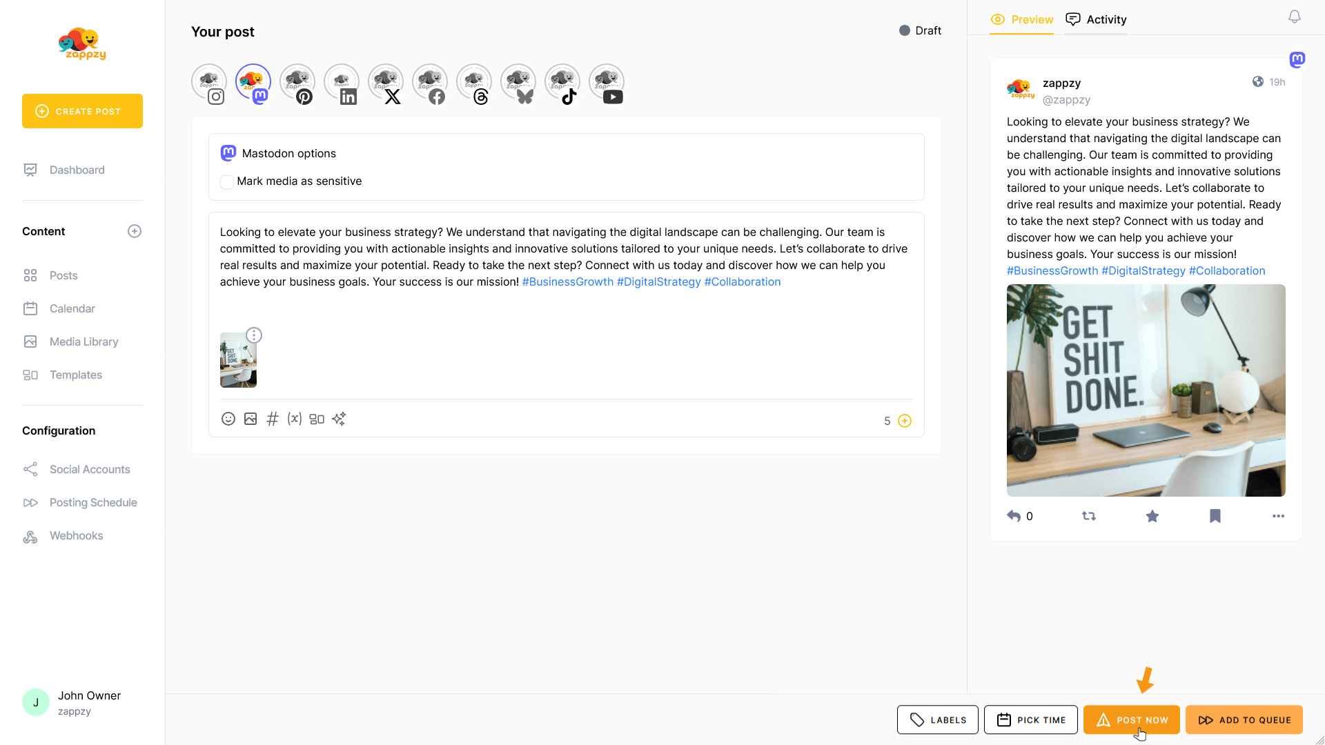 zappzy Support Center > Content > Create posts > Post timing: Pick Time, Post now, and Add to queue